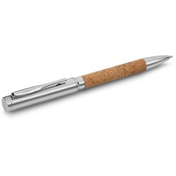 Bambusové twist kuličkové pero s kovovým klipem, barevnou špičkou a vrškem, barevným pogumovaným úchopem. Modrá náplň.