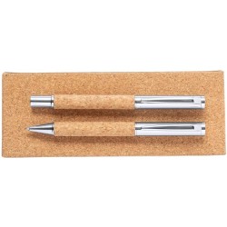 KANSAS je elegantní sadou psacích potřeb pro milovníky přírodních materiálů šetrných k životnímu prostředí. Sada obsahuje propisku a kuličkové pero vyrobené z kovu a korku. Vkusné pouzdro v černé barvě vyzdobené korkovými prvky. Propiska s mechanismem typu twist, s černou nápln, kuličkové pero s uzávěrem a s černou náplní.
