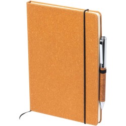 Sada s blokem s deskami z PU kůže se 100 listy a stejně barevným plastovým kuličkovým perem s modrou náplní, v bílé dárkové krabičce.