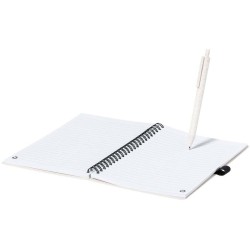 Blok s deskami z lepenky, se 100 listy, barevnou záložkou a gumičkou.