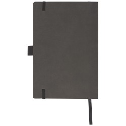 Ekologický poznámkový blok formátu A5 s deskami z kartonu, s černou gumičkou přes obal a záložkou, 98 listů