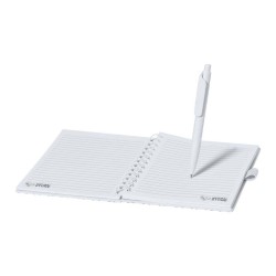 Poznámkový blok ve formátu A5 s tvrdými deskami podšitými denimem. Tento zápisník má 192 linkovaných listů, elastickou gumičku, záložku ve formě stuhy, vnitřní kapsu a držák na pero (pero není součástí balení).