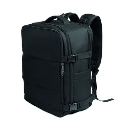 Plátěný batoh s hlavní přihrádkou na zip a přední kapsou. S polstrovanou přihrádkou na notebook (15) a tablet (10), polstrovanými zády a detaily z PU kůže.