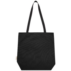 Dvoubarevná nákupní taška z recyklované bavlny s dlouhými uchy a výrazným štítkem z recyklované bavlny. 100% recyklovaná bavlna, 120 g/m2.