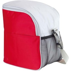 Polyesterová chladící taška s uzávěrem na suchý zip a popruhem pro pohodlné přenášení.