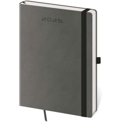 Denní diář Catanella 2024 v netradiční modrošedé barvě. Povrch s jemnou strukturou připomínající výbrus diamantu je vhodný pro všechny typy ražeb. Diář má zakulacené rohy, poutko na tužku a elastickou gumičku, sloužící k pevnému uzavření.
