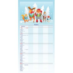 Praktický čtyřměsíční plánovací kalendář s náhledem čtyř měsíců současně a orientační lištou s posuvným jezdcem. Obsahuje kalendárium s českými jmény a světovými svátky.