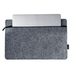 Taška na notebook z RPET plsti s přihrádkou na zip a přední kapsou. Vhodné pro notebooky do 15". S výrazným štítkem RPET.