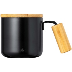 Vakuový hrnek na nápoje WAVE HOLD, dvoustěnný: vnitřek z recyklované nerezové oceli, vnější strana z nerezové oceli, praktická rukojeť, plastové víko se silikonovým těsněním a integrovaným posuvným otvorem na pití, objem cca 450 ml, udrží teplé nápoje cca 4 hodiny a studené až 8 hodin, v krabičce