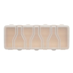 Diskrétně navržená klíčenka ve tvaru krabičky s hliníkovým tělem na léky nebo tampon, lesklým povrchem a šroubovacím uzávěrem.