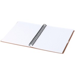 Blok s pevnými bílými deskami vyrobenými z recyklovaného kartonu. Vnitřek s 80 listy k dispozici pro pruh. Obsahuje záložku ve stejné barvě jako elastická uzavírací páska a držák na pero. Speciální pro laserové gravírování s vybranou barvou.