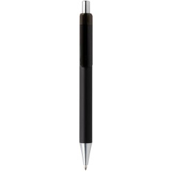 Klasické dvoubarevné pero s měkkým tělem v průsvitné bílé barvě a zářivě barevnými detaily. Modrý inkoust.