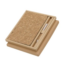 Kroužkový zápisník s obalem z pšeničné slámy a držákem na pero. 80 listů s ekologickým designem a linkami. Kuličkové pero s tlačítkovým mechanismem, tělem z pšeničné slámy a modrým inkoustem. S logem Wheat Straw. Dodáváno v samostatném recyklovaném sáčku.
