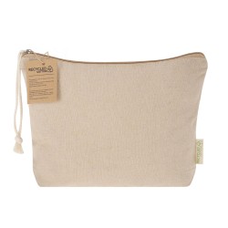 Kosmetická taška z recyklované bavlny o gramáži 220 g/m2. Se zipem ladícím se základnou a dostupná v přírodní barvě s kovovým povrchem PU kůže.