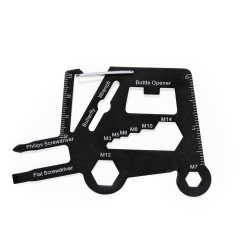 Stylový a praktický multifunkční nástroj z nerezové oceli ve tvaru motocyklu. Má 11 funkcí, mimo jiné: šestihranný klíč v různých velikostech a otvírák na láhve. Dodává se s 1 LED svítilnou napájenou knoflíkovou baterií. Baleno v recyklované papírové tašce.