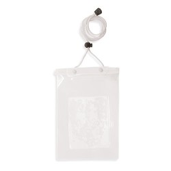Voděodolné pouzdro pro smartphone z PVC s polyesterovým popruhem. Bezpečnostní spona. Pouzdro má tenčí povrch, která umožňuje ovládání dotykového displaye z venku.