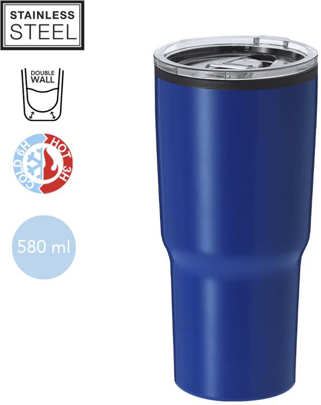 Termohrnek z nerezové oceli s dvojitou stěnou a objemem 580 ml. S dávkovačem na průhledném víku pro snadné otevírání, bez BPA. Ideální pro uložení na vašem stole, stole nebo jiném povrchu, abyste si mohli v klidu vychutnat svůj oblíbený nápoj.
