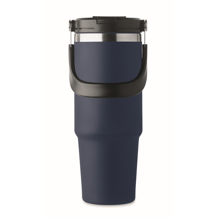 Dvoustěnný hrnek z recyklované nerezové oceli (90 % recyklované nerezové oceli a 10 % nerezové oceli) s víčkem s vnitřním brčkem a otvorem pro přímé pití. Rukojeť pro přenášení. Objem 850 ml.