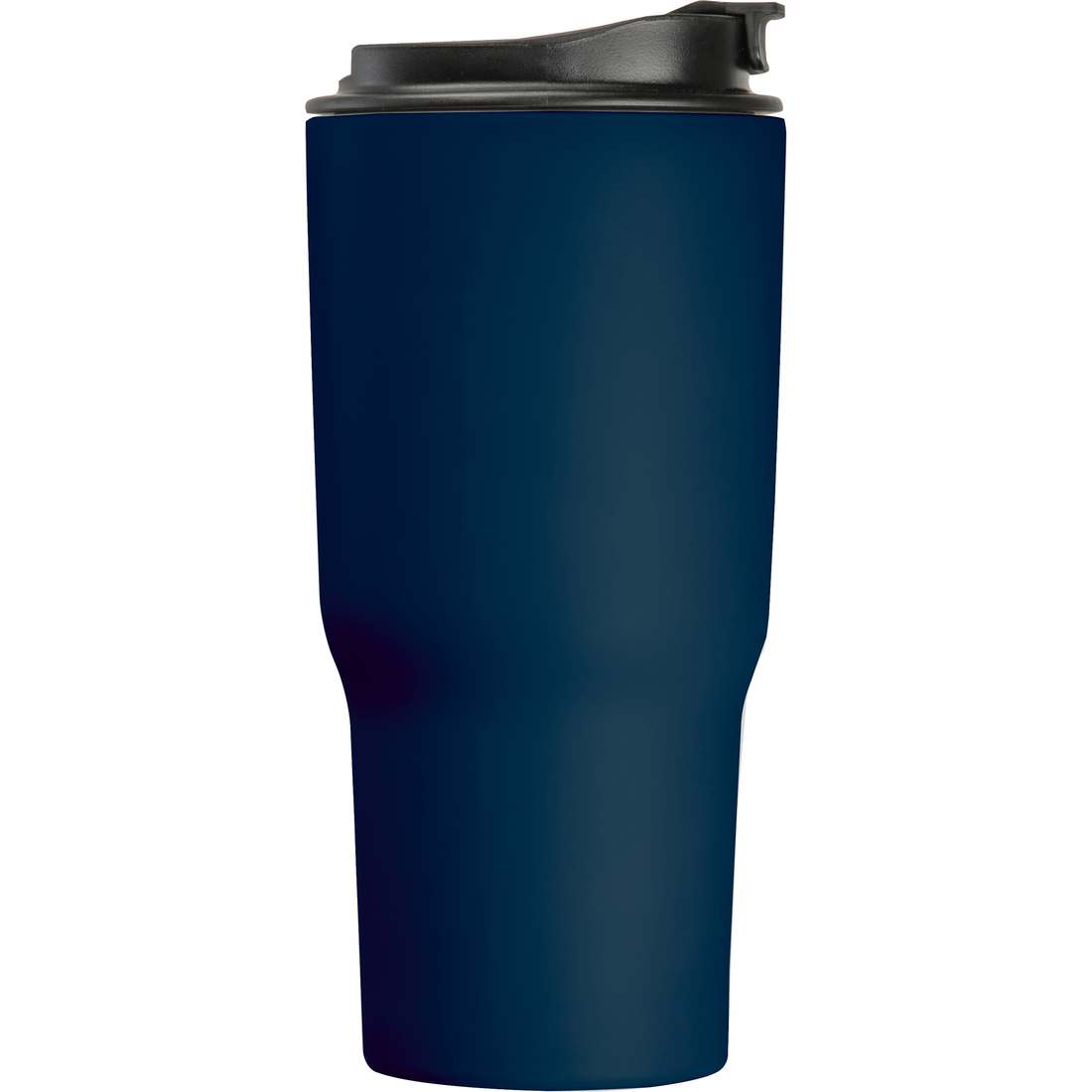 Elegantní dvoustěnný vakuový kelímek na pití z nerezové oceli o objemu 550 ml, nepropustným šroubovacím uzávěrem a otvorem na pití a praktickým popruhem na přenášení. Vaše logo vyryjeme na hrnek.