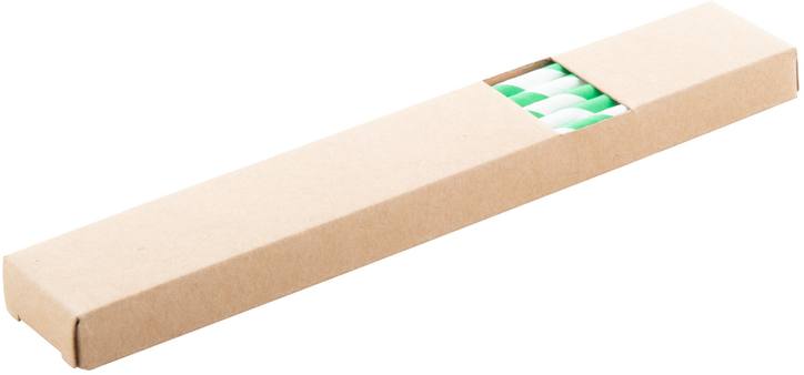 10 ks papírových brček na pití se vzorem proužků, v krabičce z kraftového papíru.