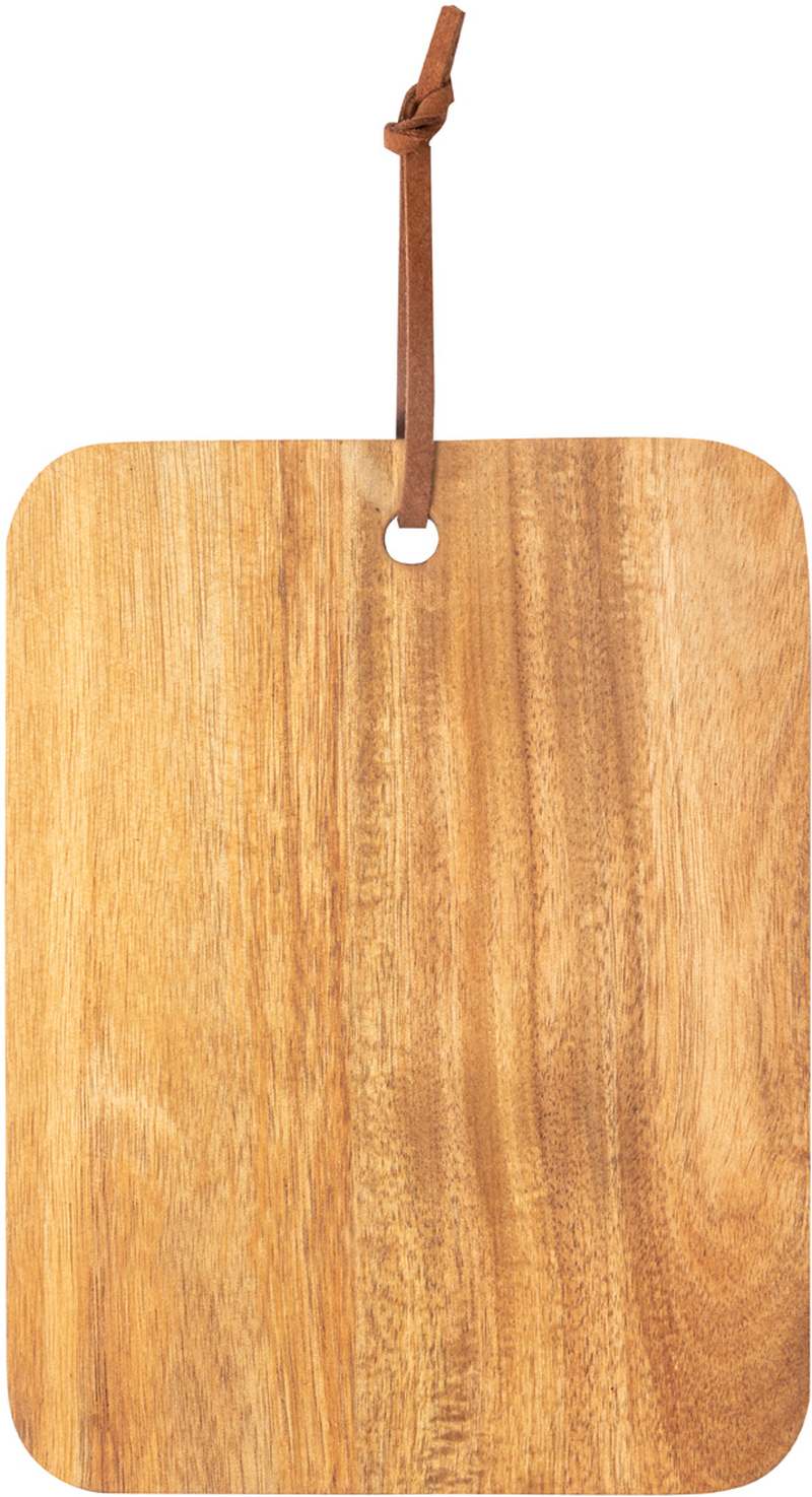 Dřevěné prkénko s PU koženou šňůrkou na zavěšení.