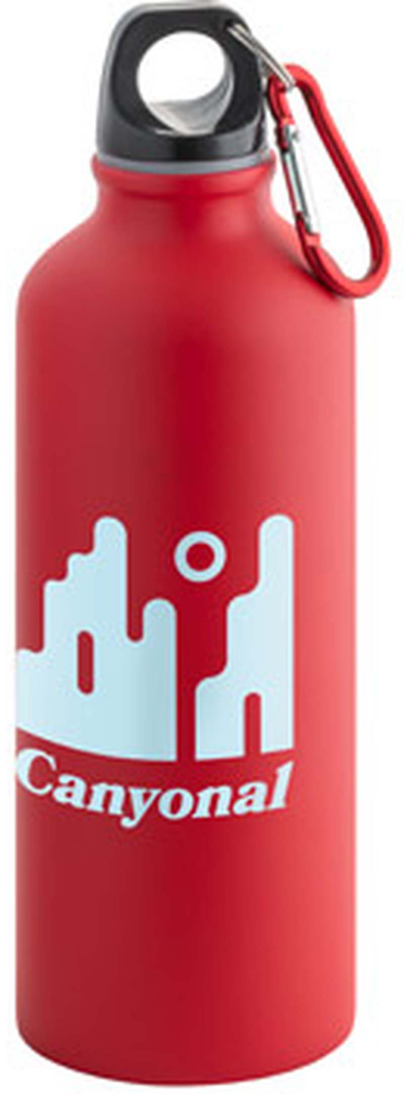 Hliníková láhev s matným povrchem a karabinou pro snadnou přepravu. Objem až 550 ml.