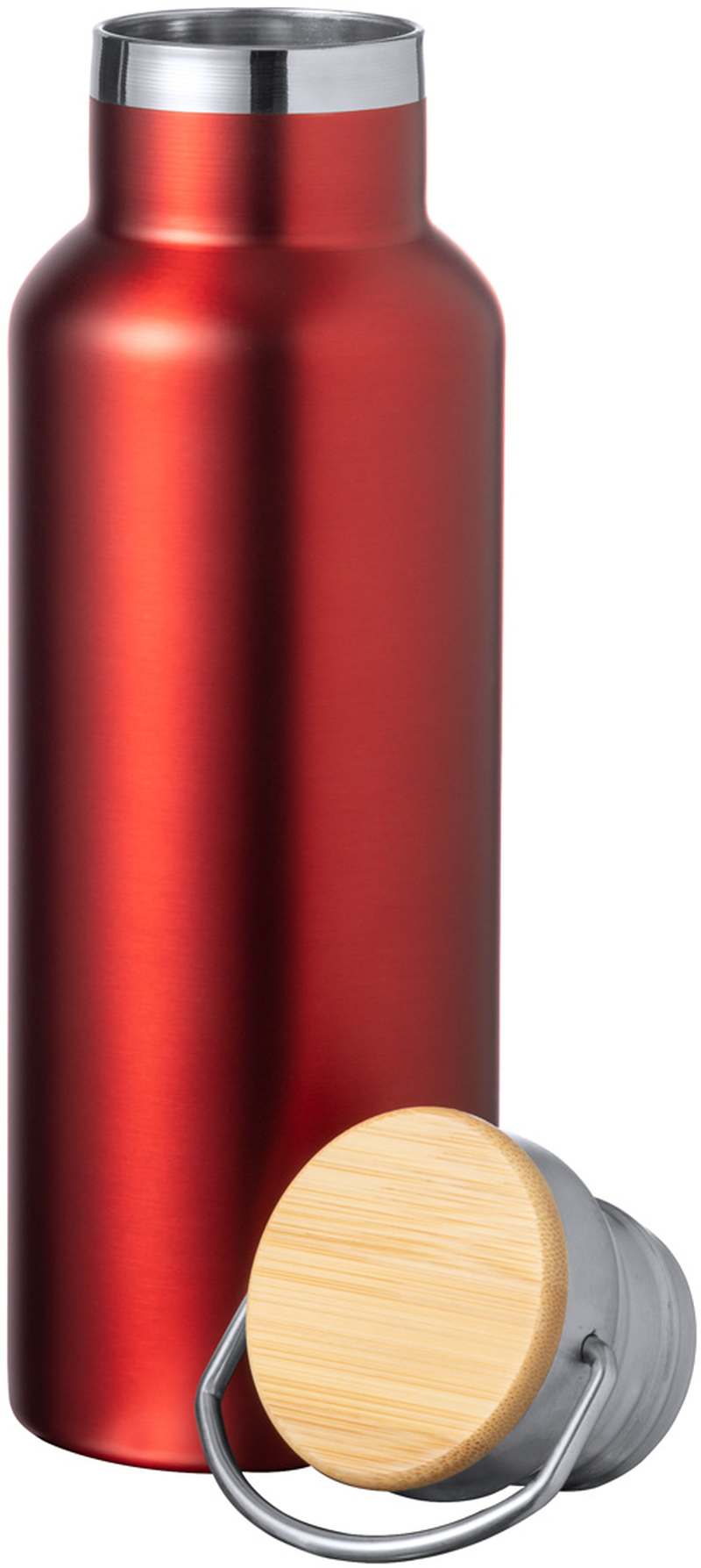 Dvoustěnná termoska z nerezové oceli s bambusovým víkem. 500 ml.
