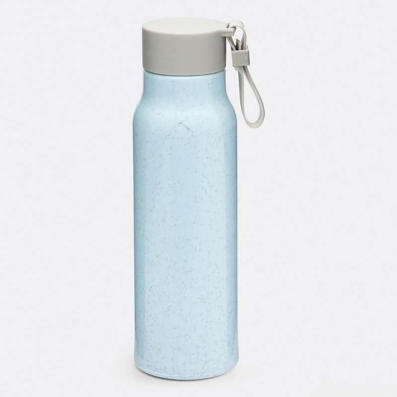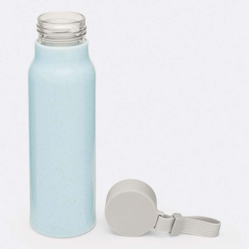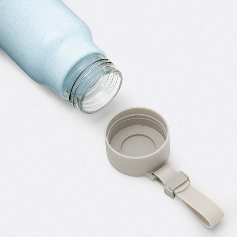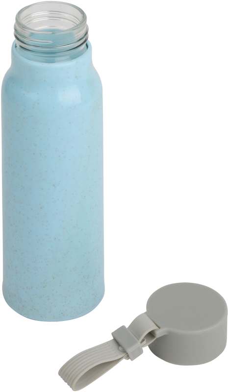 Skleněná láhev na pití ECO DRINK, potažená: šroubovací víčko s popruhem na přenášení, vyrobené z obnovitelných zdrojů, skla a plastu, kapacita: cca. 300 ml
