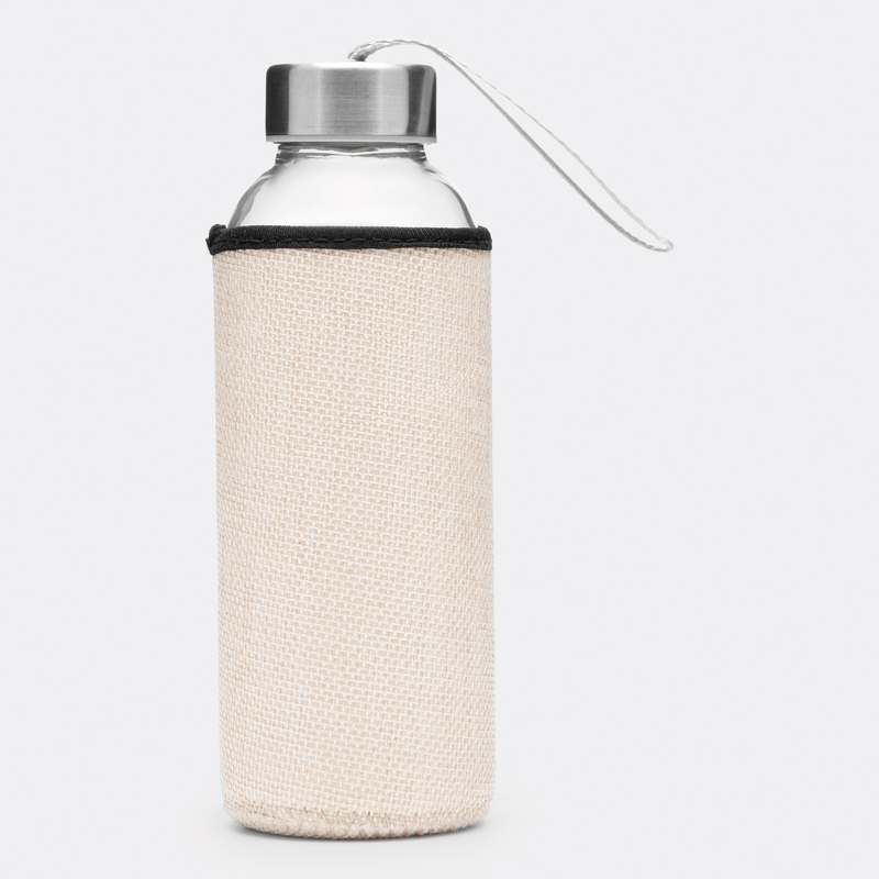 Skleněná láhev TAKE JUTY: šroubovací víčko z nerezové oceli se silikonovým těsněním a poutkem, vč. 99 ochranný návlek z juty, kapacita cca. 450 ml, v bílé krabičce