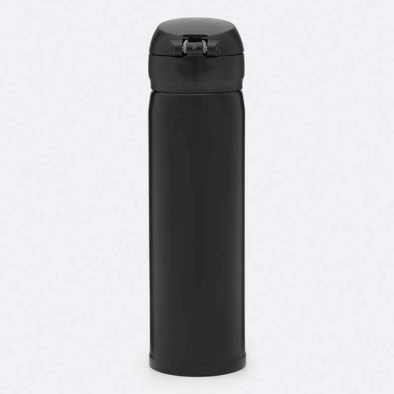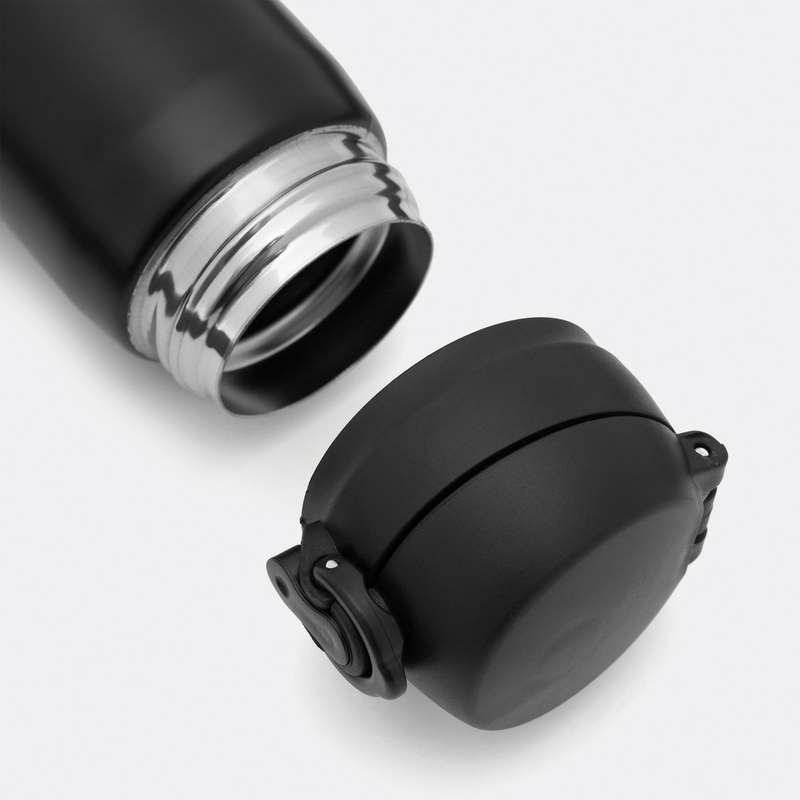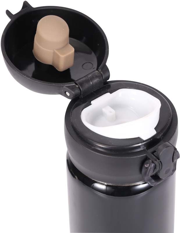 Vakuová láhev OOLONG: dvoustěnná, vnitřní i vnější stěna z nerezové oceli, s hubicí a šroubovacím uzávěrem, tlačítkem a bezpečným zavíráním, kapacita cca. 400 ml