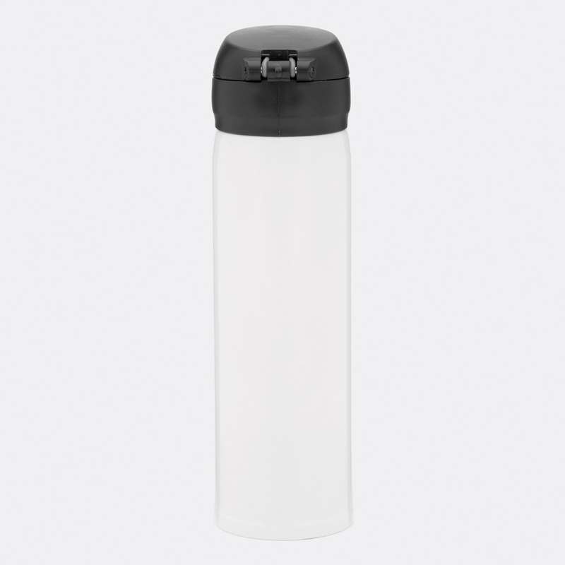 Vakuová láhev OOLONG: dvoustěnná, vnitřní i vnější stěna z nerezové oceli, s hubicí a šroubovacím uzávěrem, tlačítkem a bezpečným zavíráním, kapacita cca. 400 ml