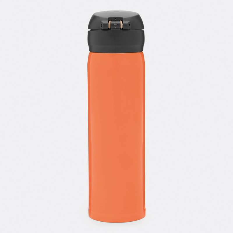 Vakuová láhev OOLONG: dvoustěnná, vnitřní i vnější stěna z nerezové oceli, s hubicí a šroubovacím uzávěrem, tlačítkem a bezpečným zavíráním, kapacita cca. 400 ml