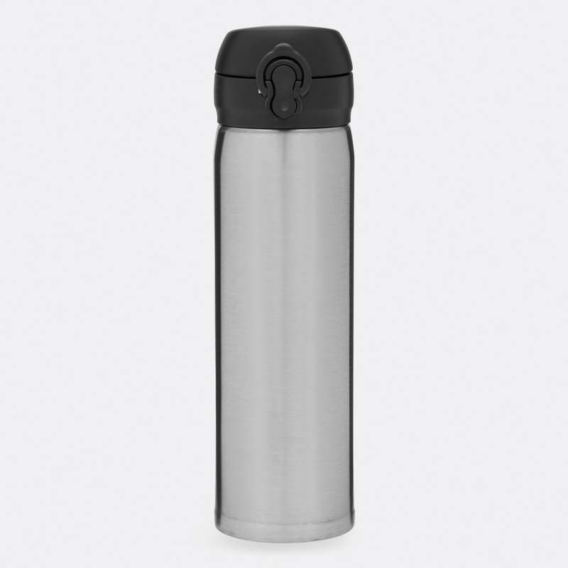 Vakuová láhev OOLONG: dvoustěnná, vnitřní i vnější stěna z nerezové oceli, s hubicí a šroubovacím uzávěrem, tlačítkem a bezpečným zavíráním, kapacita cca. 400 ml