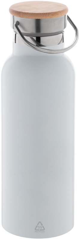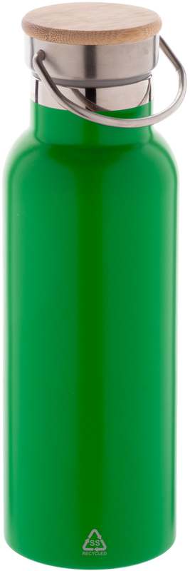 Dvoustěnná vakuově izolovaná termoska z recyklované nerezové oceli s bambusovým víkem. 500 ml.