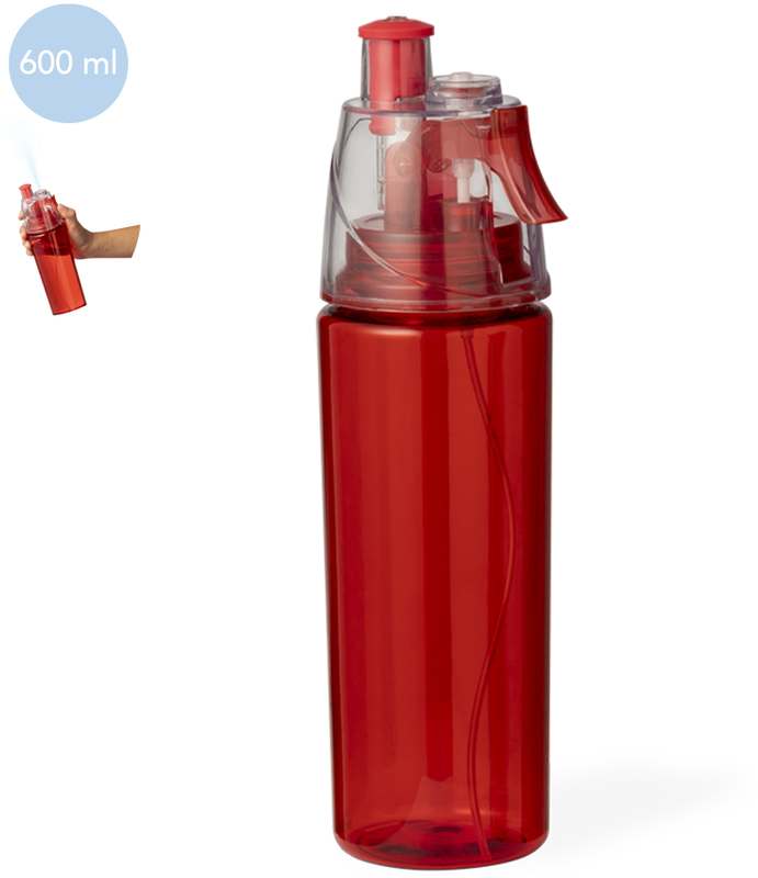 Láhev o objemu 600 ml s odpařovačem ve víčku pro osvěžení. Transparentní povrch, obsahuje dávkovač a šroubovací uzávěr pro optimální utěsnění. Dostupné v různých barvách a jednotlivě dodávány v kraft designové krabici.