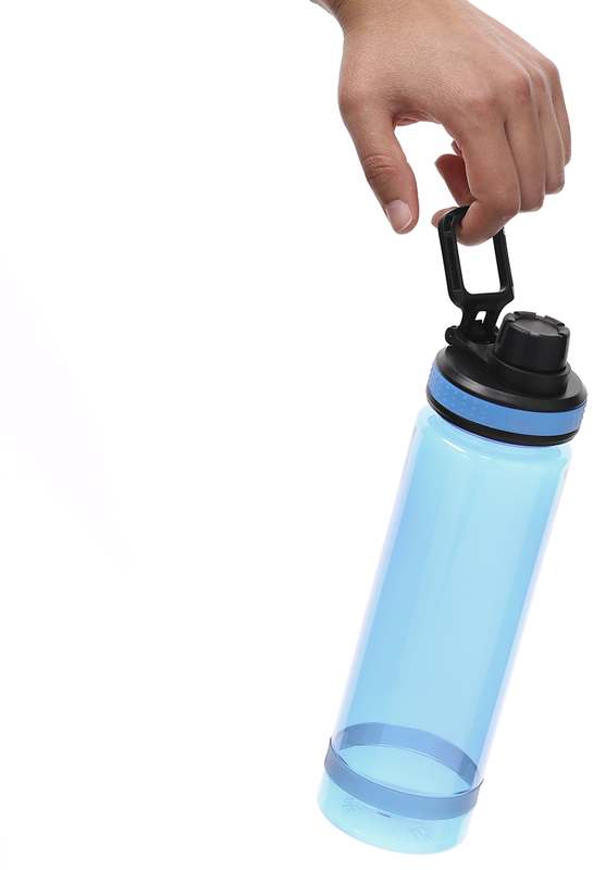 Odolná RPET láhev o objemu 700 ml. Tato láhev s průsvitným matným povrchem obsahuje černé šroubovací víčko pro optimální utěsnění, praktický šroubovací uzávěr na pití a robustní rukojeť. Materiál RPET bez BPA je vyroben z recyklovaného plastu, čímž podporuje opětovné využití plastového odpadu a napomáhá udržitelnosti planety.
