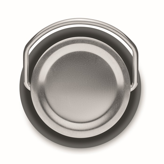 Jednostěnná láhev z recyklované nerezové oceli (90 % recyklovaná nerezová ocel a 10 % nerezová ocel) s víčkem s rukojetí. Neteče. Objem: 500 ml.