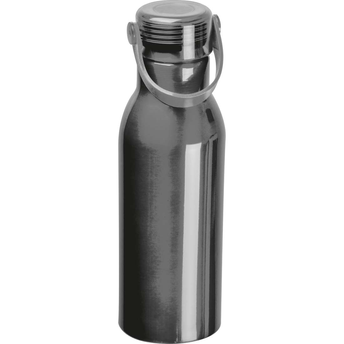 Láhev na pití o objemu 750 ml vyrobená z recyklovaného hliníku a praktickým silikonovým poutkem. Vaše logo vygravírujeme na láhev.