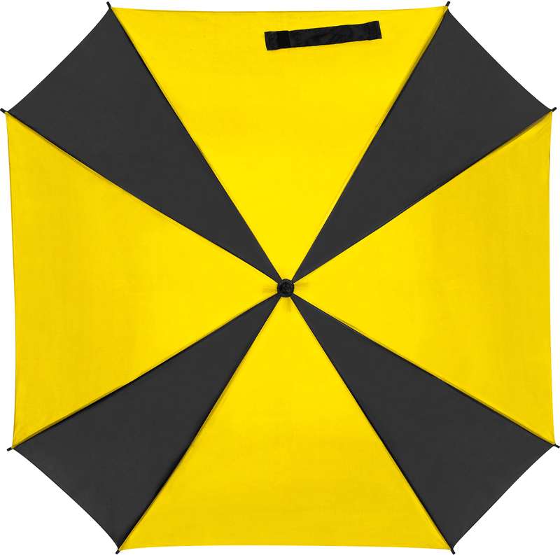 Dvoubarevný automatický deštník v čtvercovém tvaru. Pěnová rukojeť.