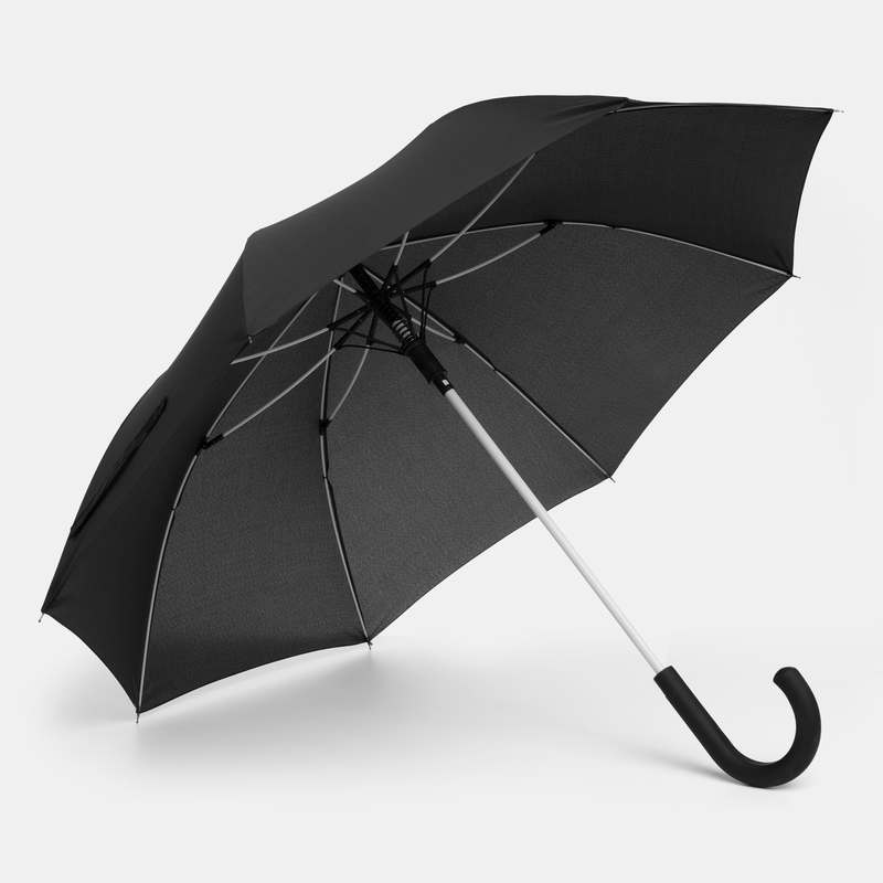 Automatický holový deštník CANCAN: kovová hole s barevně ladícími žebry ze skelných vláken, kovové koncovky, pogumovaná zahnutá rukojeť s ovládacím tlačítkem stejné barvy, voděodpudivý potah Pongee (ze směsi Polyesteru a Lycry), zapínání na poutko se suchým zipem