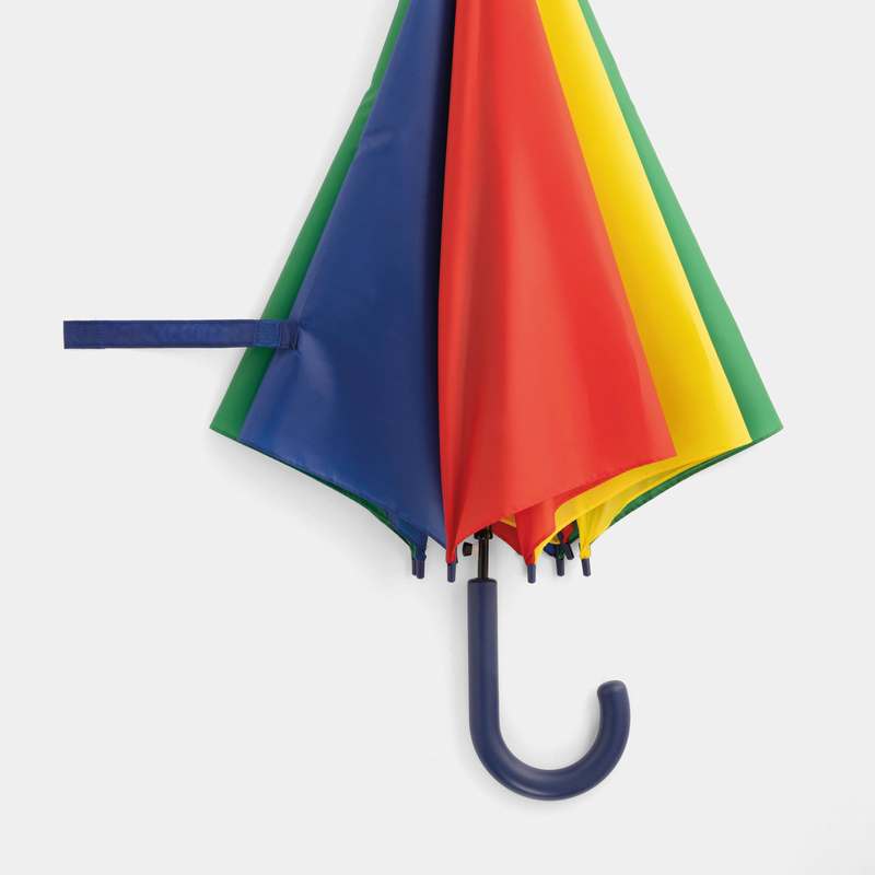 Automatický holový deštník DISCO a DANCE, s kovovou konstrukcí, kovovými žebry, plastovými koncovkami a barevně ladící plastovou rukojetí, s polyesterovým potahem a zapínáním na poutko se suchým zipem