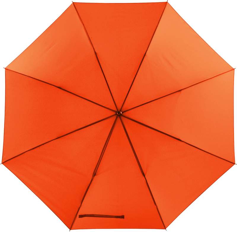 Automatický větruvzdorný holový deštník WIND, kovová hole, žebra ze skelných vláken a kovové koncovky, pogumovaná zahnutá rukojeť, voděodpudivý potah Pongee (ze směsi Polyesteru a Lycry), zapínání na poutko se suchým zipem