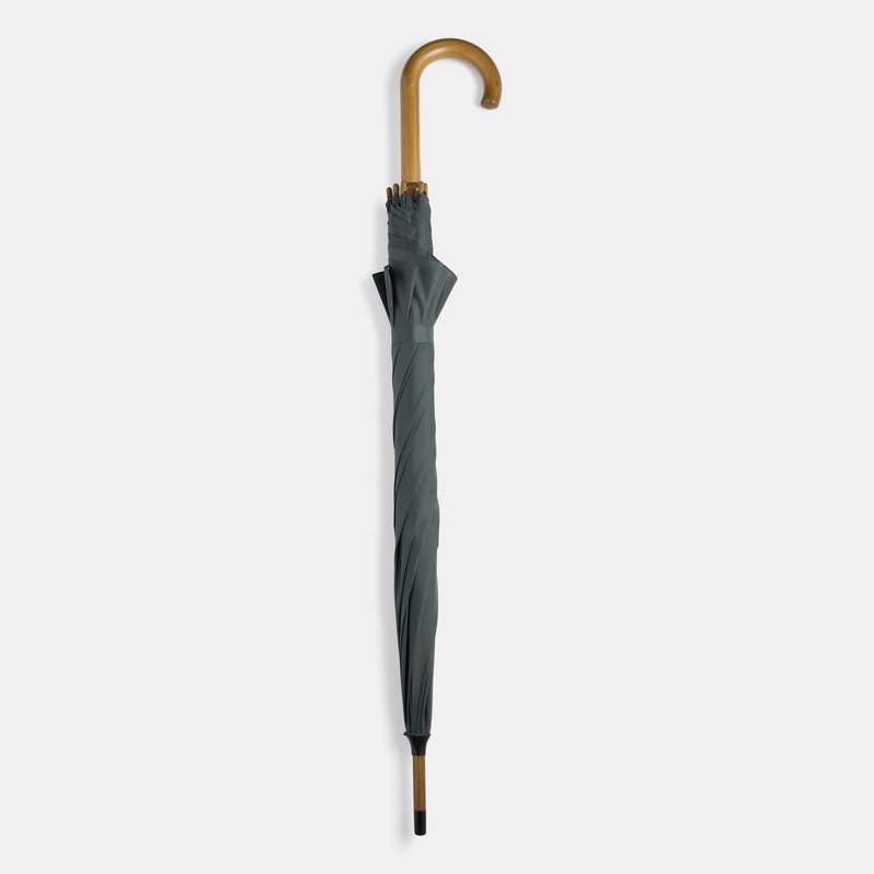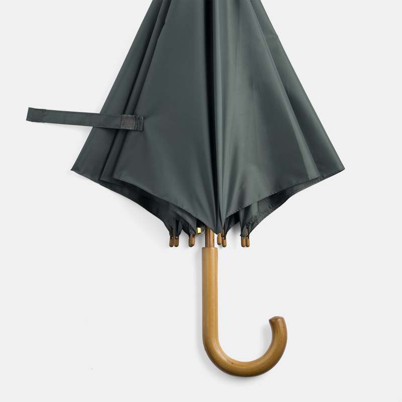 Automatický dřevěný holový deštník BOOGIE, kovová žebra, dřevěné koncovky a zahnutá dřevěná rukojeť, nylonový potah se zapínáním na poutko se suchým zipem