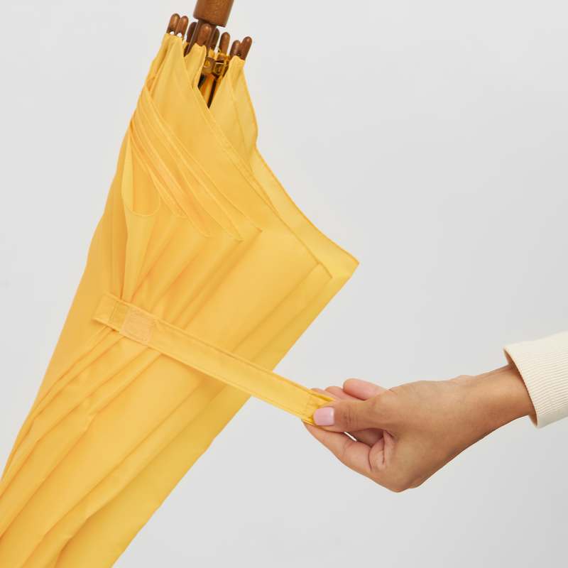 Automatický dřevěný holový deštník BOOGIE, kovová žebra, dřevěné koncovky a zahnutá dřevěná rukojeť, nylonový potah se zapínáním na poutko se suchým zipem