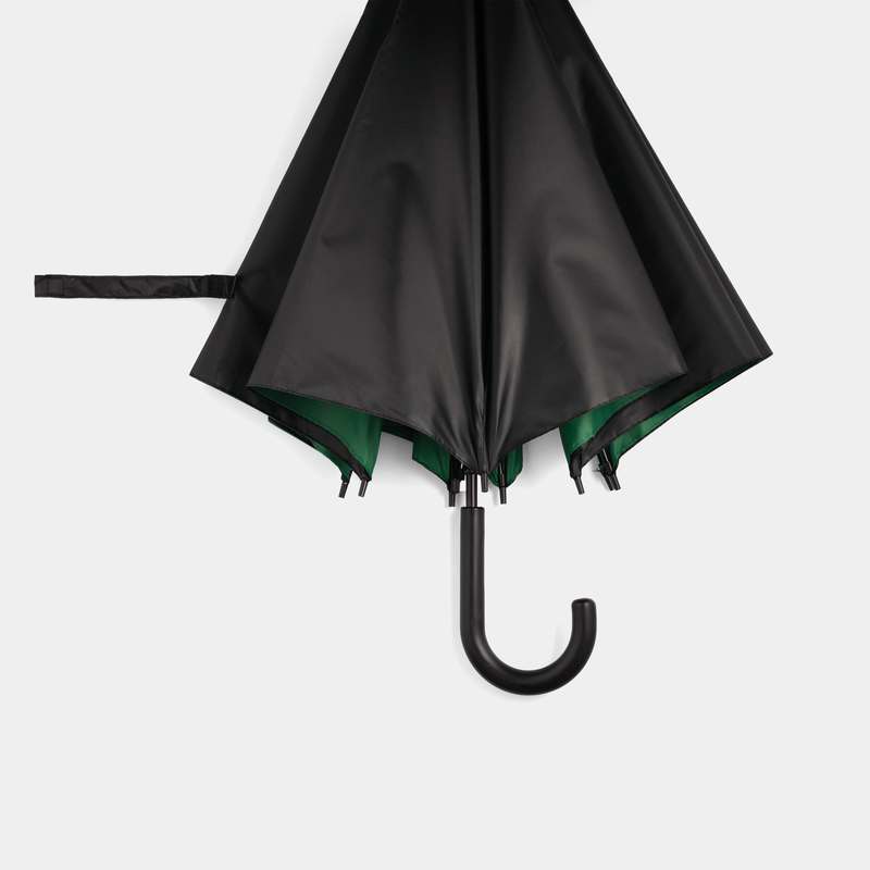 Automatický holový deštník DOUBLY s dvojitým polyesterovým potahem a barevnou vnitřní stranou, kovovou konstrukcí, plastovými koncovkami a zahnutou rukojetí, se zapínáním na poutko se suchým zipem