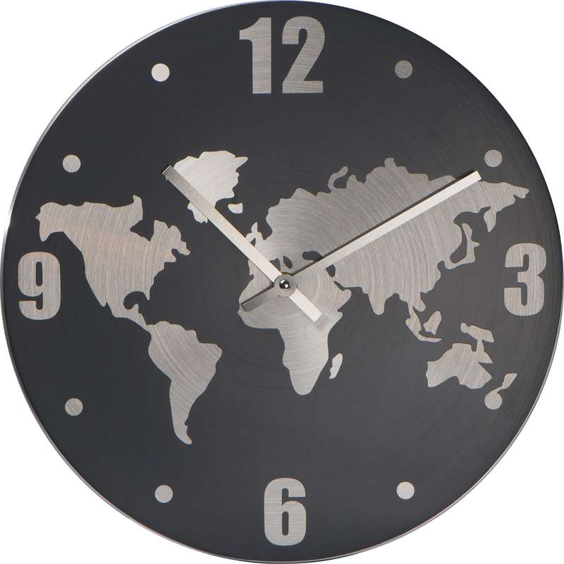 Hliníkové nástěnné hodiny s mapou světa na pozadí. detailCena bez DPH
