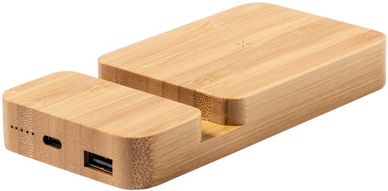 Bambusová powerbanka s 5000 mAh baterií, vestavěnou bezdrátovou rychlonabíječkou (15W) a držákem na mobil. Se 1 por… detailCena bez DPH