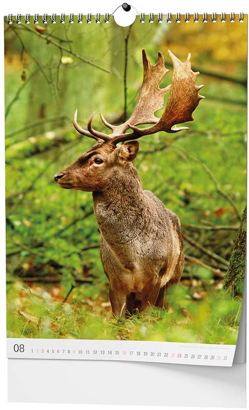 Nástěnný kalendář pro vášnivé myslivce s informacemi o době lovu a hájení zvěře.