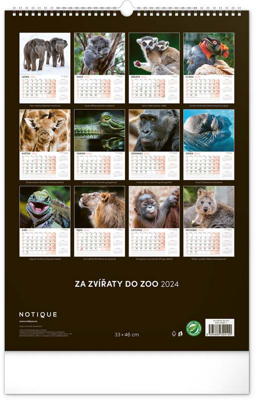 Exkluzivní fotografie zvířat, které zachytil Miroslav Bobek v zoologických zahradách a chovných zařízeních po celém světě. Nástěnný kalendář obsahuje české kalendárium se jmény, svátky a památnými dny a prostor na poznámky.