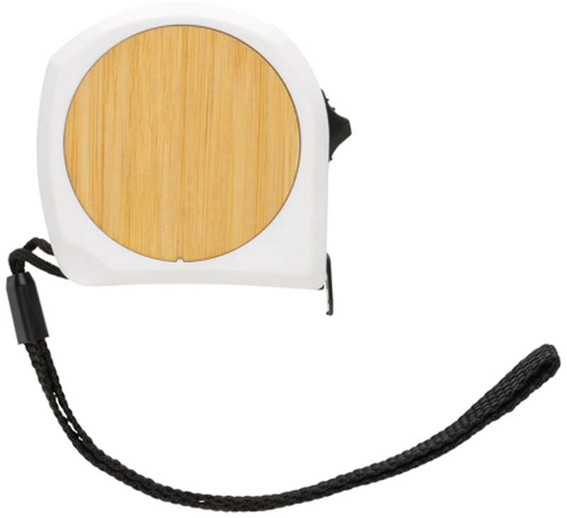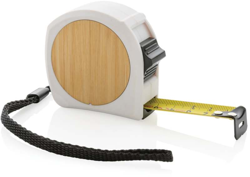Svinovací metr s délkou 5 m vyrobený z RCS recyklovaného ABS plastu. RCS (Recycled Claim Standard) je globální standard, který umožňuje ověřit použití recyklovaného materiálu v produktu napříč celým dodavatelským řetězcem. Celkový podíl recyklátu dle váhy produktu: 11 %. Stylový detail ze 100 % FSC bambusu. 19 mm široké žluté pásmo s ocelovým háčkem. Poutko na zápěstí, tlačítko pro uzamčení/uvolnění. Baleno v FSC kraftové dárkové krabičce.